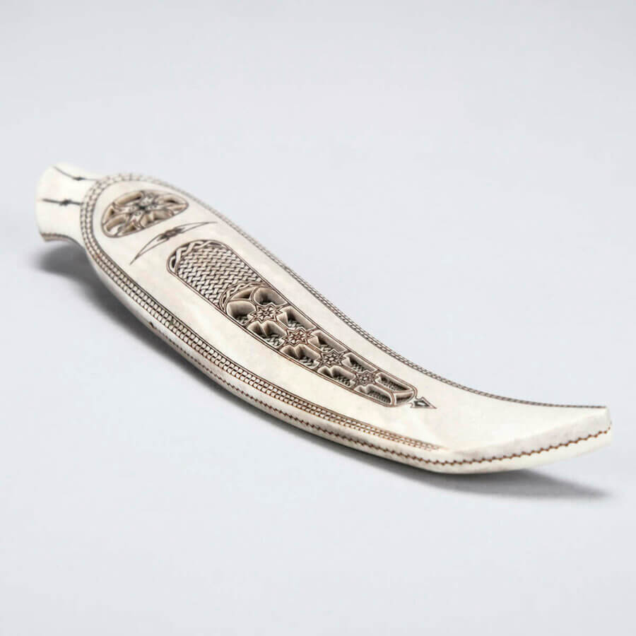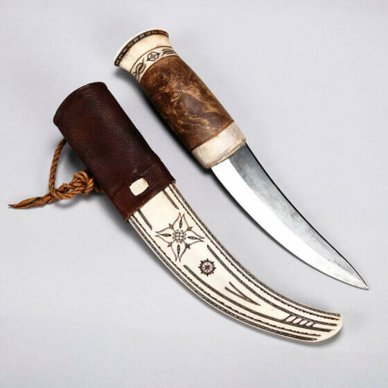 Les Samis avaient l’habitude de fabriquer leurs propres outils à la main, en sculptant le manche de leurs couteaux dans du bois de renne. Cette matière première traditionnelle, utilisée depuis des siècles dans l’extrême nord de la Scandinavie, faisait partie intégrante de la vie des Samis. Depuis la fin des années 1960, seuls quelques-uns d’entre eux maîtrisent l’art de travailler le bois de renne.